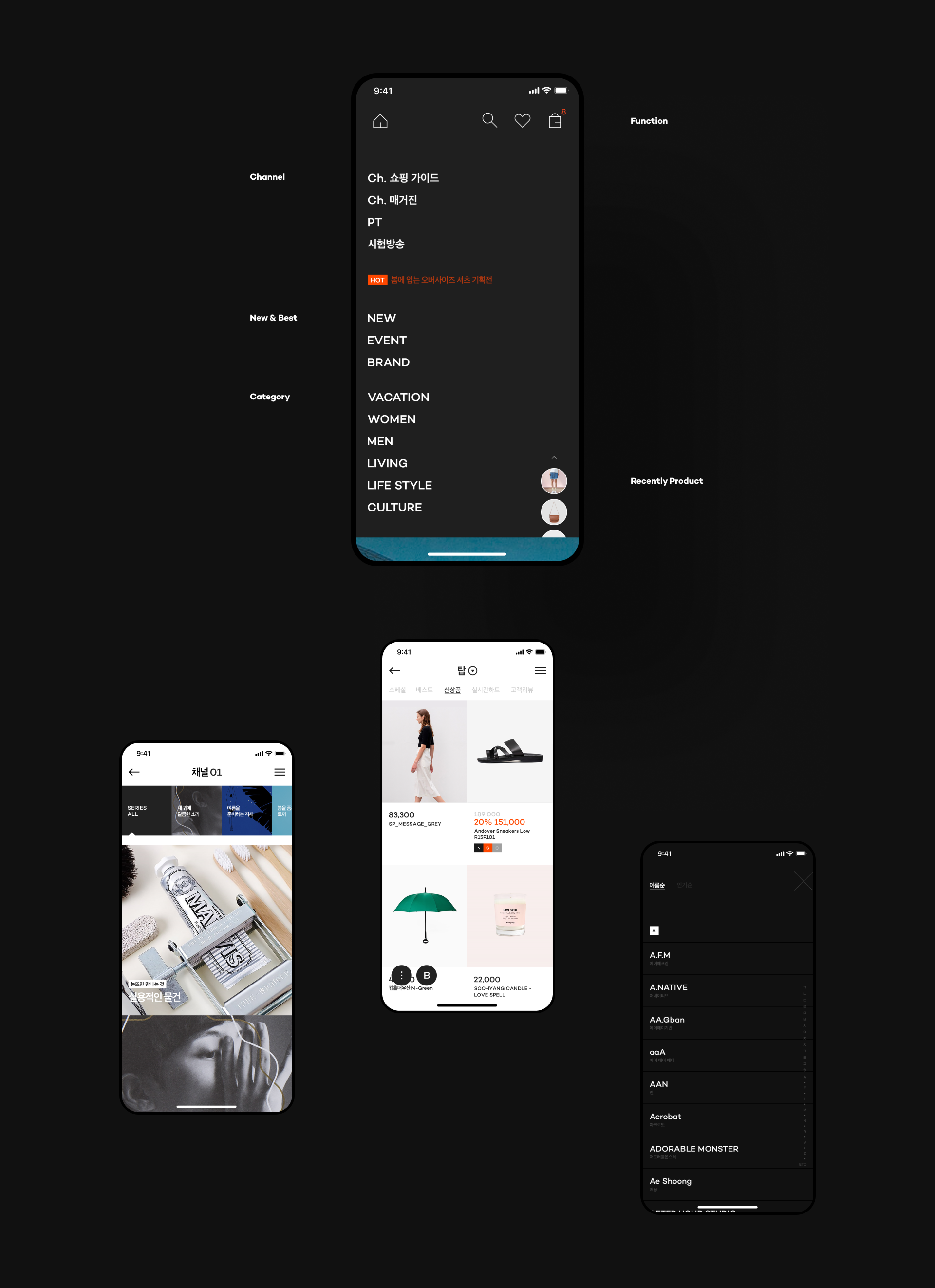 초창기 베타 1.0버전부터 정식 2.0 버전, 브랜드 리뉴얼 후 아이덴티티 적용 버전까지 29CM만의 차별화된 감성을 모바일에 담아 디자인하였습니다.